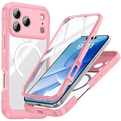 IPhone 17 için Pro Max manyetik kılıf 360 tam vücut koruma temperli cam telefon kılıfı 15 Pro 16e çift katmanlı ön cam kapak
